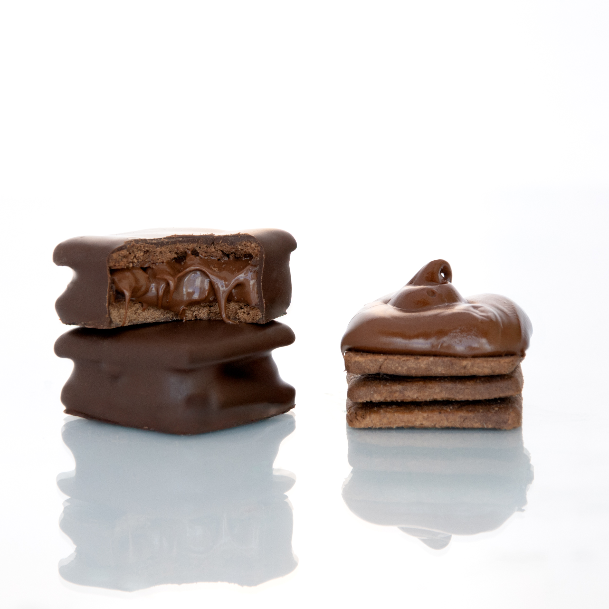 Alfajor compuesto por dos deliciosas galletitas de chocolate rellenas de una crema de avellanas con chocolate, cubierto de chocolate semiamargo.